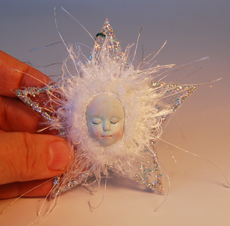 I decorated them with eyelash trim, dimensional gel paint, glitter and other scraps of fiber from the hobby store. I don't have time to write it all up but you can get the idea.